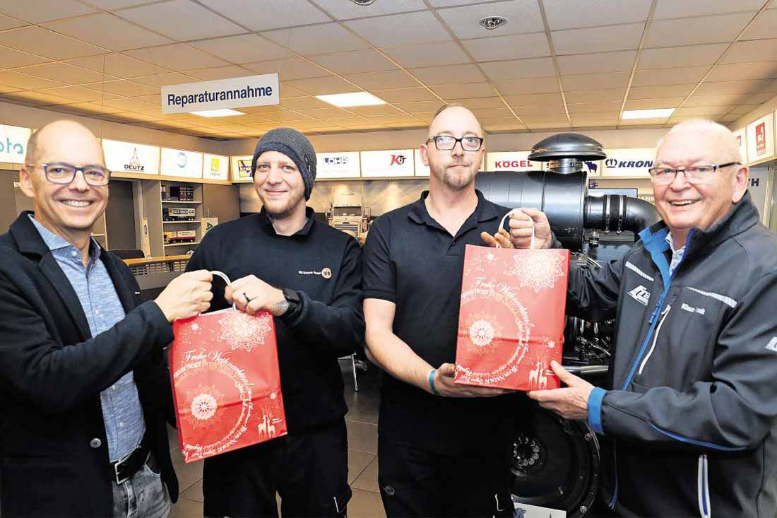 In der Vorweihnachtszeit ist ein solcher Besuch in Markranstädt unter Kraftfahrern besonders beliebt. Auch in diesem Jahr hat das Team von Frank  Fahrzeugbau wieder 600 Tüten mit kleinen, nützlichen Geschenken gepackt. Jeder Brummi-Pilot, der vom Hof fährt, bekommt Von Rainer Küster eine dieser Tüten mit auf den Weg. „Das ist nicht nur eine Geste mit viel Herz, sondern auch ehrliche Wertschätzung unserer Arbeit“, freut sich denn auch Kraftfahrer  Tobias über die Anerkennung. Die beliebten Beutel mit handgemachtem Gebäck, Schneidebrett und Messer oder Thermosflasche sind nicht die einzigen  Zutaten, mit denen das Unternehmen bei Fahrern und Speditionen insbesondere in der Weihnachtszeit punktet. „Wenn die Rasthöfe überfüllt und Speditionen geschlossen sind oder der Lkw hier in der Werkstatt steht, findet man bei Frank Fahrzeugbau immer eine saubere Dusche und meist auch ein Zimmer für die Übernachtung“, schwärmt Peter Serve. Der 70-Jährige war selbst Berufskraftfahrer, fuhr 45 Jahre lang quer durch Europa, bevor er sich in Markranstädt niedergelassen hat. Unterstützt von Firmen wie Frank Fahrzeugbau kümmert sich Serve heute, zusammen mit elf weiteren Mitstreitern aus der Umgebung, um die gestrandeten Trucker. Schon seit Monaten sammelt die rührige Truppe ehrenamtlich Spenden. Jetzt packen sie Tüten mit Weihnachtsgebäck und kleinen  Geschenken. „An den Feiertagen geht es dann von 9 bis 16 Uhr in zwei Gruppen raus auf die Piste“, erläutert Serve den seit 2011 jährlich wiederkehrenden Plan. Ein Team übernimmt die Autobahnen rund um Leipzig, das ande-re die südlichen Regionen bis hin zum Hermsdorfer Kreuz. Hunderte Geschenketüten, darunter auch viele von Frank Fahrzeugbau, werden an Kraftfahrer verteilt, die das Fest allein und fernab der Heimat am Straßenrand verbringen müssen.